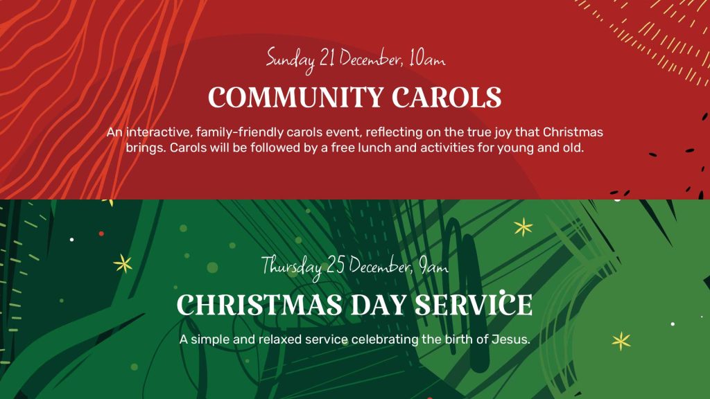 Then at 9am on Christmas Day, going us for a simple and relaxed service celebrating the birth of Jesus.